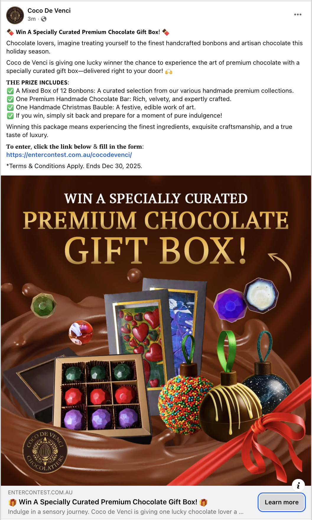 People simply had to click the ad & then go to a Landing Page where they could enter to win.