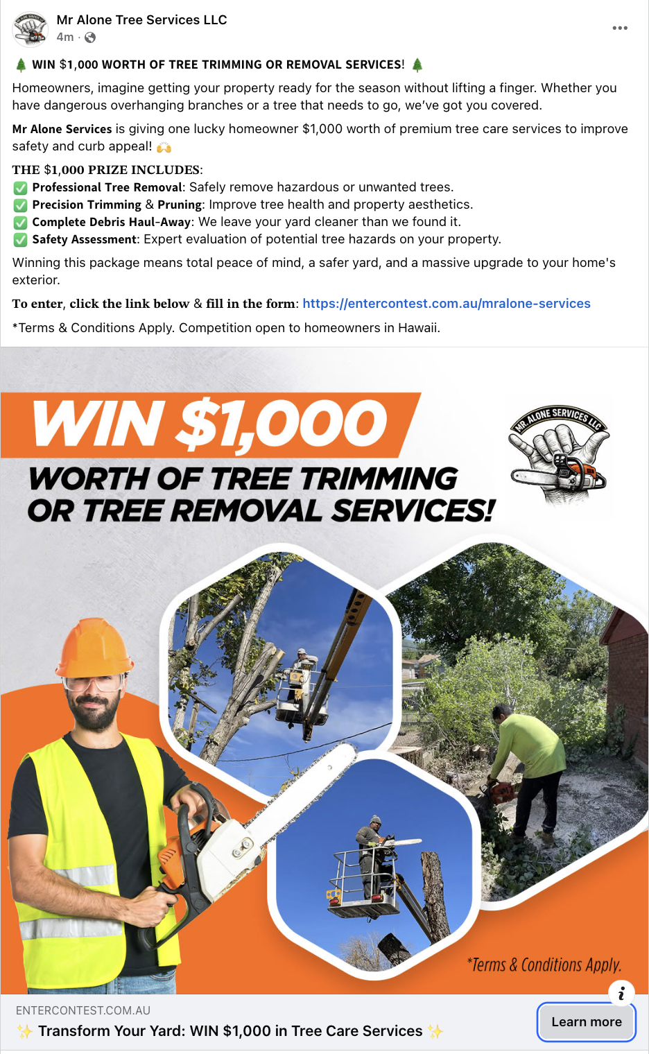 We create the Facebook ad and the Contest Entry Landing Page for you.