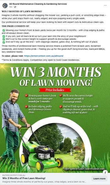 Owner Ben Langham was blown away with getting 110 hot leads in just the first week of the Facebook contest with a daily spend of just $20.